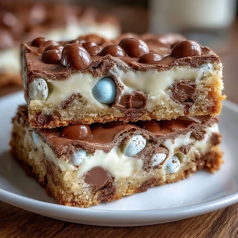 When I first thought about using Cadbury Mini Eggs in a baked good, I wasn't sure if the chocolate would melt into oblivion or stay intact and delicious. It turns out that chopping them into uneven chunks and folding them in gently lets them soften slightly during baking without disappearing, and the shells hold enough structure that you get distinct pockets of chocolate throughout. The bonus is that their sweetness is built into the recipe, so you don't need to make the blondies as sweet as you might otherwise.