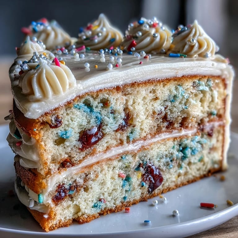 Save The scent of butter and sugar swirling through the kitchen as rainbow confetti settles over the counter can only mean one thing: we're celebrating. The first time I tried my hand at this confetti cake, it was less about perfection and more about embracing the chaos—sprinkles everywhere, laughter echoing from the living room, and my playlist on just a little too loud. I was drawn to the idea of something festive you could sink your fork into, ridiculously colorful and just a bit over the top. Swiping a finger through the champagne buttercream, I realized that sometimes, the fun of baking is in the boldness of the colors and flavors. If a cake ever deserved its own party, this would be it.
