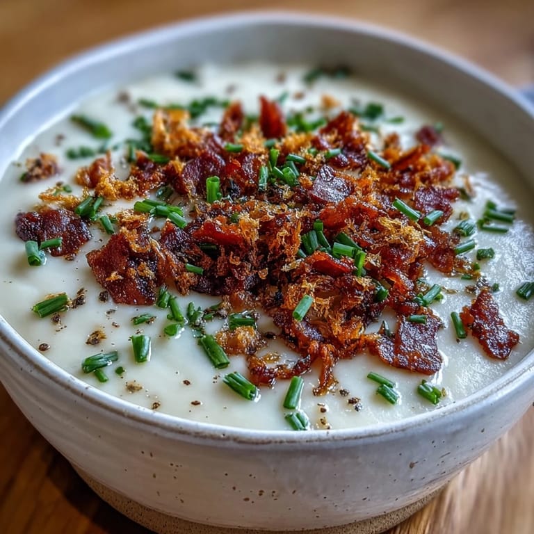 - Ladle the soup into bowls and crumble or break the bacon over the top, finishing with a small handful of chopped chives or parsley if you have them. The contrast between the smooth, warm soup and that crispy, salty bacon is what makes this dish feel complete.