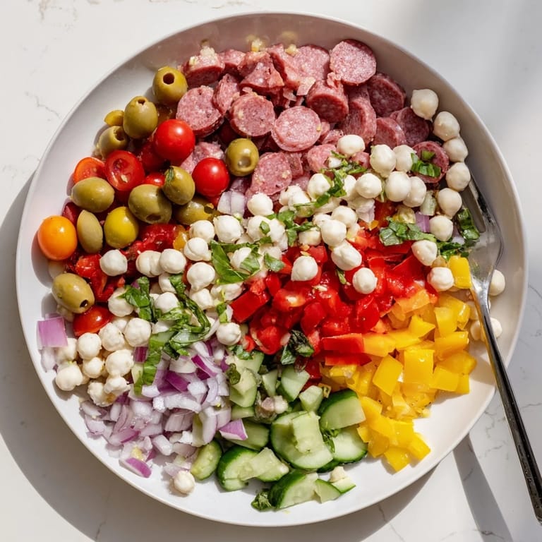 Save The first time I made this chopped salad, my kitchen counter looked like a rainbow had exploded across it. I was meal prepping for the week and decided to throw together all my favorite antipasto bar ingredients into one bowl. My roommate walked in, took one look at the colorful chaos, and asked if I was starting a restaurant. By the time we both sat down with bowls, I realized I had stumbled onto something magical.