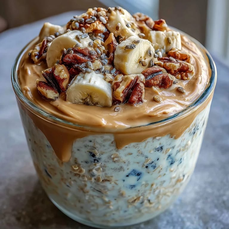 Save The smell of peanut butter always pulls me back to mornings when I had ten minutes and zero energy but still needed something real in my stomach. I started making these oats on Sunday nights after realizing that breakfast couldn't be an afterthought anymore. The first jar I pulled out of the fridge on a Monday morning tasted better than I expected, thick and creamy, like someone had slow-cooked comfort overnight. I ate it standing by the counter, straight from the jar, and felt oddly proud. Now it's the recipe I make when I want to feel like I have my life together, even when I absolutely don't.