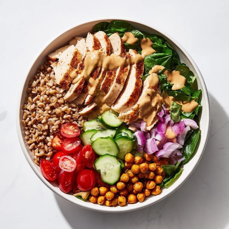 Save The first time I made this bowl, it was a Tuesday evening when I needed something that felt special but didn't require three hours of hovering over the stove. I had roasted chicken from the weekend and a jar of tahini sitting in the pantry, waiting for inspiration. When I took that first bite, the way the bright lemon cut through the creamy sauce while the warm farro anchored everything, I knew this was going to be a regular rotation. My roommate actually stopped scrolling through her phone and asked what I was eating.