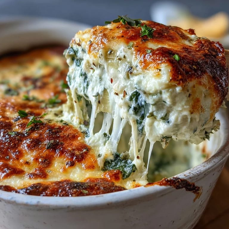 Save The smell of garlic and bubbling cheese pulled everyone into the kitchen before I even called them. I was testing this dip on a random Tuesday, not for a party, just because I had spinach to use up. By the time it came out of the oven, golden and crackling at the edges, my neighbor had wandered over with a bag of tortilla chips. We stood at the counter and devoured half the dish in ten minutes, laughing at how something so simple could feel like such a victory.